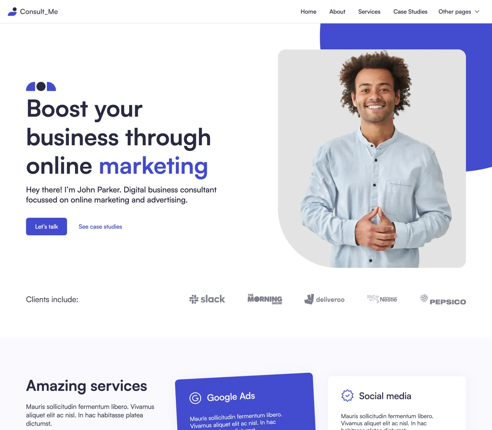 Consult Me is the perfect choice for consultant companies and individuals seeking to establish a professional and trustworthy online presence.